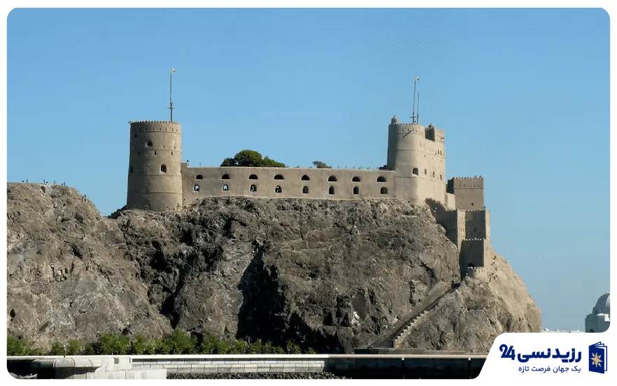 قلعه المیرانی بنایی تاریخی در کنار ساحل مسقط است و معماری آن ریشه در دورههای دفاعی قدیم دارد. این قلعه بر فراز صخرهای بلند قرار گرفته و چشماندازی گسترده به دریا و کاخ سلطنتی دارد. فضای داخلی شامل برجها، حجرهها و بخشهایی است که کاربریهای نظامی و نگهبانی داشتهاند. بازدید از این قلعه فرصتی برای آشنایی با ساختارهای نظامی گذشته عمان فراهم میکند.