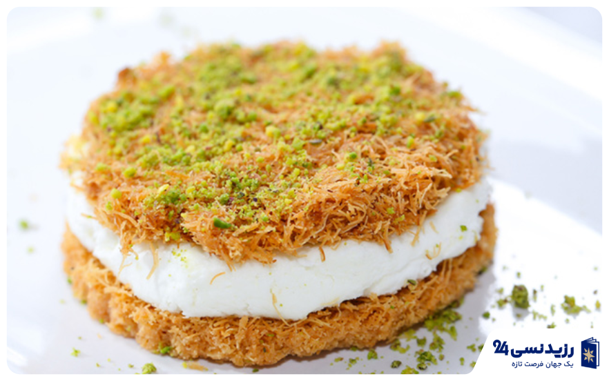 کنافه از دسرهای محبوب خاورمیانه است که در دبی نیز جایگاه ویژهای دارد. این شیرینی از رشتههای نازک خمیر و لایهای از پنیر نرم یا خامه تهیه میشود و پس از پخت با شربت شیرین سرو میگردد. ترکیب بافت ترد بیرونی با لایه نرم داخلی، کنافه را به یکی از انتخابهای پرطرفدار در قنادیها تبدیل کرده است. اغلب این دسر با پسته خردشده و عطر گلاب تزئین میشود.