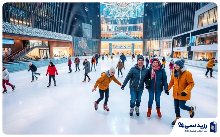 پیست یخ دبی مال یکی از جذابترین بخشهای این مجموعه است و امکان اسکیت برای افراد مبتدی تا حرفهای را فراهم میکند. در این پیست کفشهای اسکیت استاندارد ارائه میشود و دستگاه یخپرداز کیفیت سطح یخ را حفظ میکند. کلاسهای آموزشی نیز برای علاقهمندان برگزار میشود و کودکان با کمک پنگوئنهای تعادلی میتوانند راحتتر روی یخ حرکت کنند.