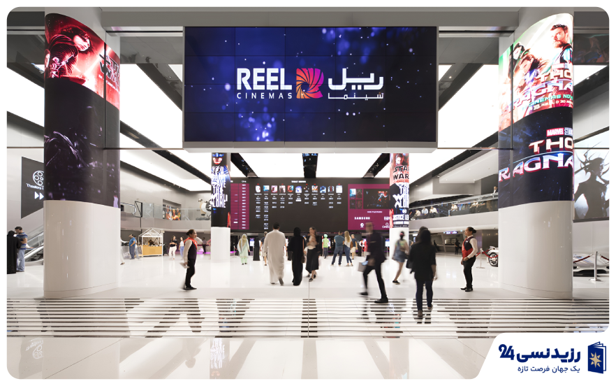 سینما ریل دبی مال مجموعهای بزرگ از سالنهای نمایش است و امکاناتی با کیفیت تصویر و صدای بالا را ارائه میدهد. در این سینما ۲۲ پرده نمایش فعال هستند و انواع فیلمهای روز دنیا به صورت دوبعدی، سهبعدی و چهاربعدی پخش میشوند. سالن پلاتین با ارائه خدمات اختصاصی، سطحی متفاوت از تماشای فیلم را فراهم میکند و مبلمان راحت و خدمات پذیرایی آن برای تماشاگران جذاب است.